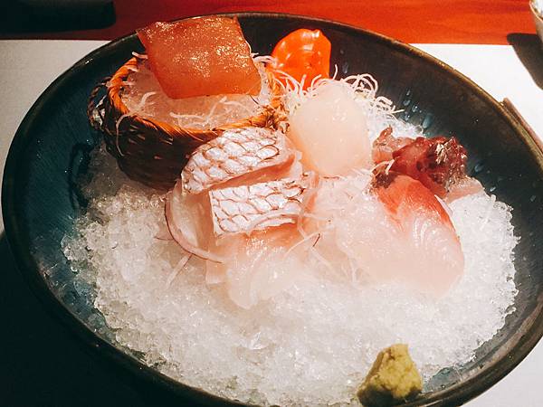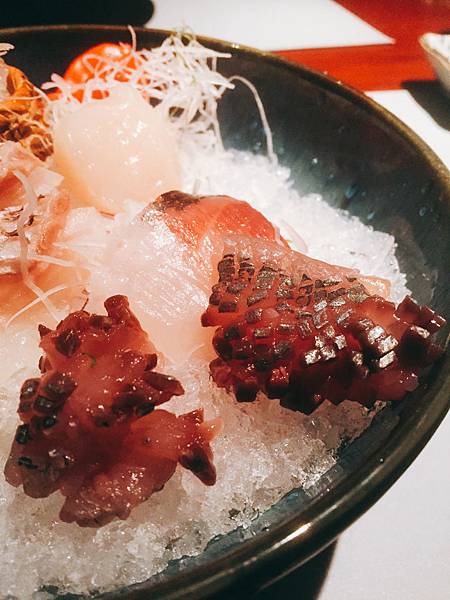 竹夾魚切花,師傅的刀功驚人, 完成品好像電影裡神秘的立方體,可惜我們帶著嬰孩沒坐在吧台區無法觀賞Live show。除了切花美,魚肉本身新鮮甜美,吃完好久嘴巴都還有淡淡的甘甜味,這盤生魚片💯!